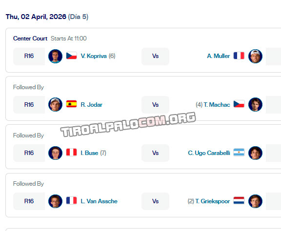 En cuartos de final se enfrentará a otro cabeza de serie, en un caso así , el No. 3 Corentin Moutet, que resolvió con autoridad su pase a la próxima ronda en oposición al invitado local Taha Baadi por 6-0, 6-2 en 64 minutos. El marroquí venía de ofrecer la sorpresa en su debut ante ell australiano Aleksandar Vukic en tres sets.